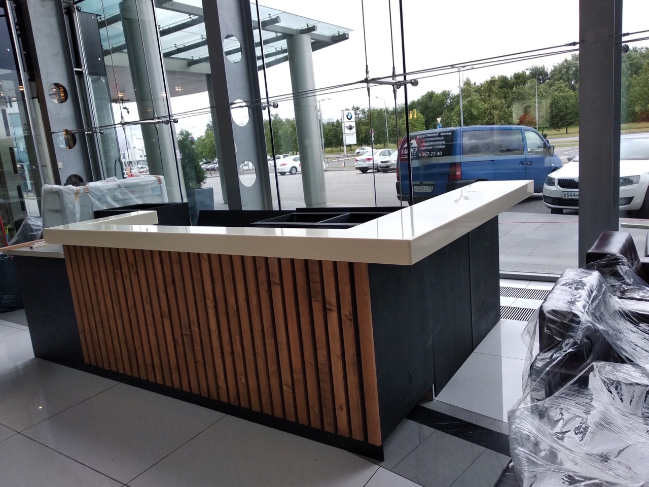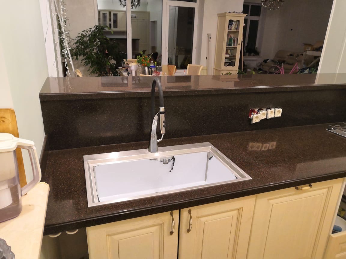 Мы всё делаем по максимуму и осуществляем работу под ключ: замер, эскиз, изготовление, монтаж изделия из искусственного камня выполнят мастера нашей компании.